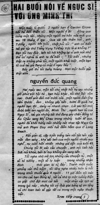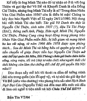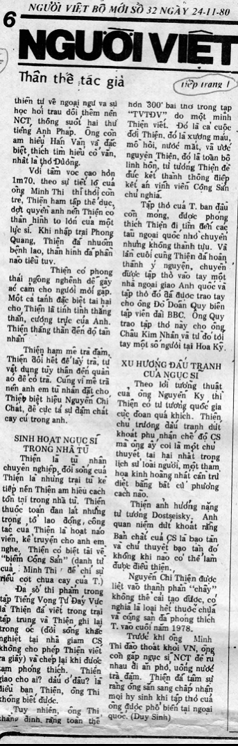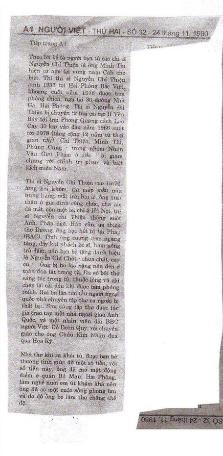 Chí Thiện. Thiển nghĩ chính báo Người Việt phải